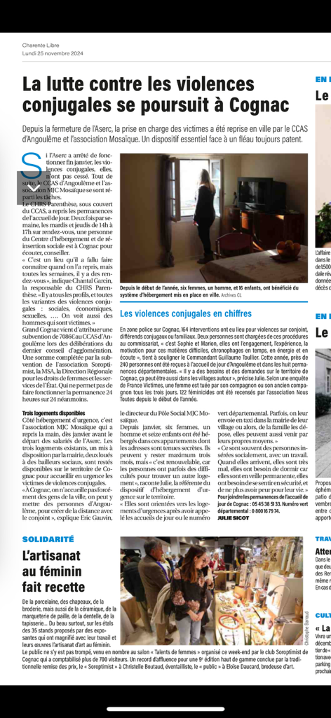 Eloïse Daycard avec son atelier de broderie d'Art gagne le 1er Prix du public 2024 au Salon "Talents de femmes" du club Soroptimist International de Cognac, en Charente. Une belle mise en lumière qui permet à la jeune artisane de montrer son savoir-faire. Merci au club des Soroptimist de Cognac d'apporter leur soutien et une aide financière aux entrepreneuses.